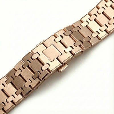 Diseñada para quienes buscan precisión, durabilidad y un diseño inconfundible, esta correa estilo Royal Oak de 20 mm fusiona ingeniería y elegancia deportiva. Fabricada en acero inoxidable 316L, ofrece una alta resistencia a la corrosión y al desgaste cotidiano. Sus eslabones integrados de líneas angulares y acabado satinado proporcionan una estructura sólida y un ajuste ergonómico que se adapta naturalmente a la muñeca. El sistema de ajuste preciso permite una personalización óptima para un uso cómodo y seguro. Una correa sofisticada y robusta, ideal para quienes aprecian el diseño contemporáneo y la calidad atemporal.